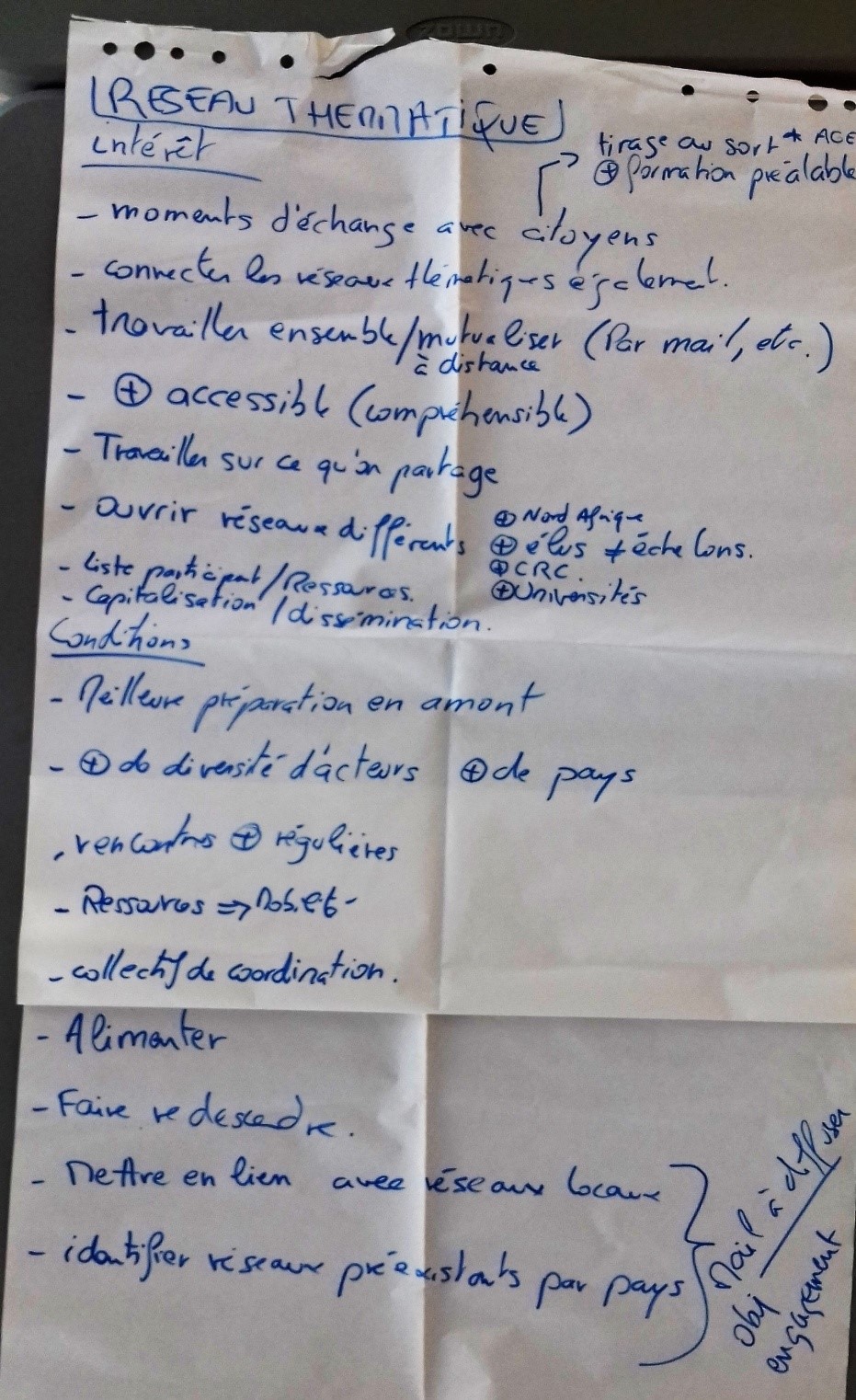 • Mise en commun des prises de note et établissement d’un compte redus à partager entre tout le monde avant la prochaine réunion thématique.