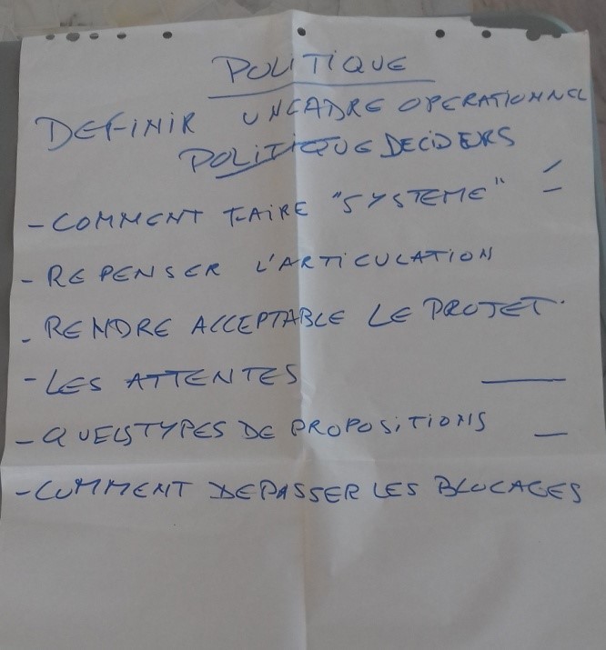 • Session 3 : Du modèle aux besoins de politiques publiques : deux groupes de travail ont été constitués pour l’identification des politiques publiques (voir les conclusions ci-après)